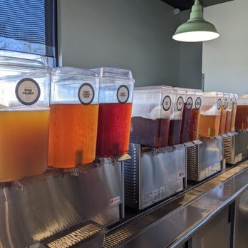 My favorite was the black tea with mint—crisp, refreshing, and sweet. I mixed the sweet version with a bit of unsweetened for balance. Most blends seem clean in ingredients, and they even sell dry tea if you want to brew at home. They’ve got fruit cups too if you want to toss fresh fruit into your drink.